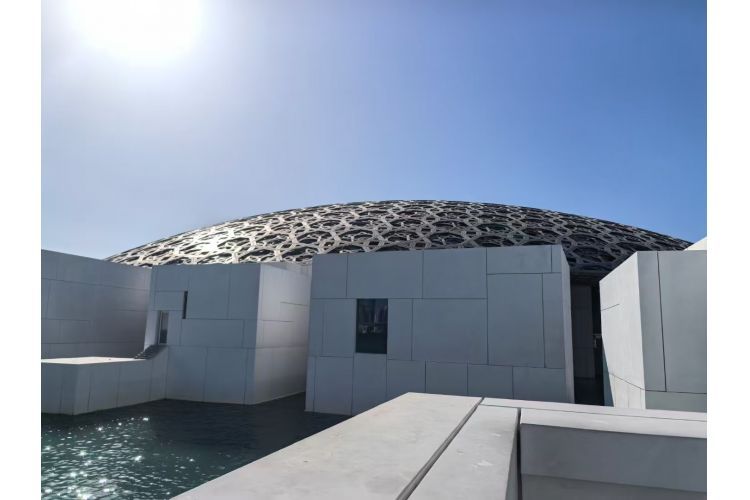 入内阿布扎比卢浮宫—法国卢浮宫第一个分馆,是一座漂浮在海上的博物馆,展示了来自世界各地的艺术品和文化遗产,是文化与艺术的完美结合.
