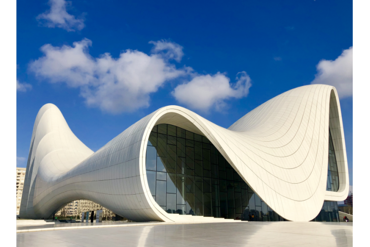 下午:外观巴库地标性建筑【黑达尔阿利耶夫文化中心】(外观约15分钟),是57000多平米的一个流线型折叠连续的建筑,不同角度,不同光线下,建筑也会呈现出不同的造型。