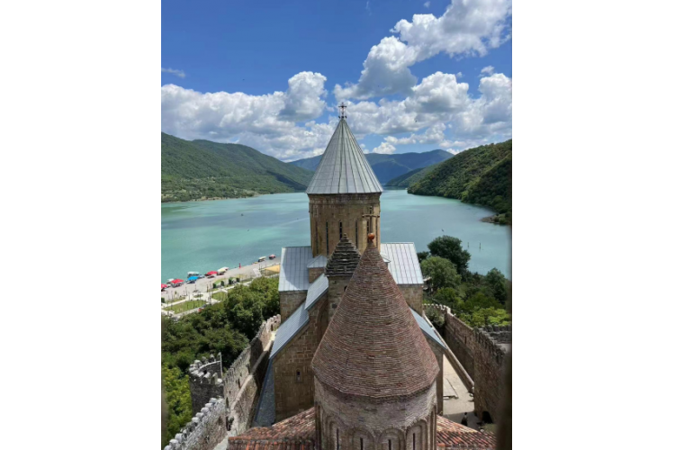 下午:后中途在Aragvi River水库(停留约10分钟)留影,乘车前往《孤独星球》封面之地-安南努利城堡(Ananuri),(入内游览约30分钟)城堡坐落在阿拉格维湖的半山之上,绿宝石般的湖水和蔚蓝的天空,衬托着典雅秀美的古堡,真如同走在童话之中。它曾经是私人军事城堡,它是13世纪Aragvi封建王朝时领主的城堡,也是军事要塞。18世纪Aragvi王朝被推翻,这里随之也被之后的统治者占领,直到19世纪依然是城堡要塞。,此城堡由当时的乔治亚领主建于16世紀,目前依旧保持得相当完整。
