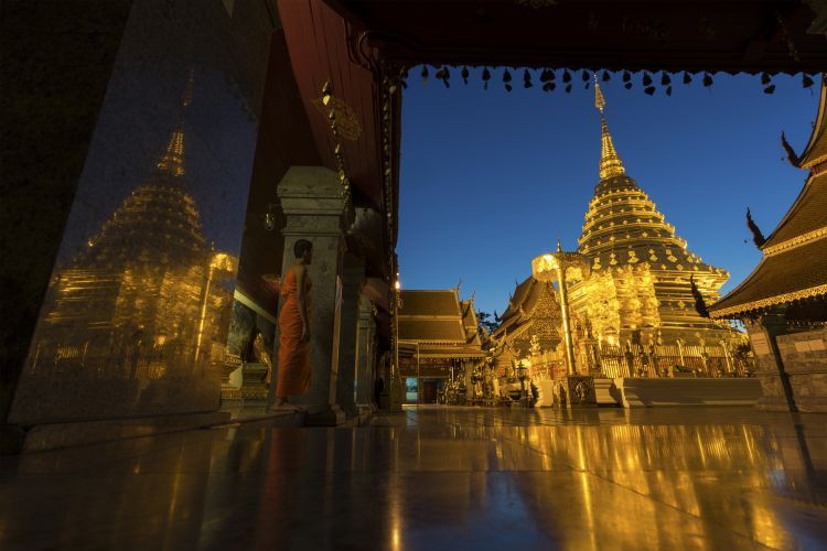 【帕辛寺】清迈规模最大、香火最旺的佛寺,建于14世纪,与契迪龙寺同为清迈等级最高的寺庙。寺内装饰金碧辉煌,供奉着Phra Singh的佛像,殿内壁画以当地古代服饰和风俗为内容,被认为是泰国北部传统艺术的代表作。