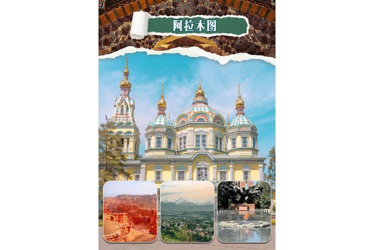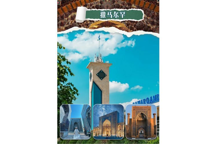 中亚:“乌兹别克斯坦-撒马尔罕,宛如一颗镶嵌在中亚大地的明珠。”形象地比喻了撒马尔罕的美丽和它在中亚的重要地位,雷吉斯坦广场上的金色穹顶和精美壁画让人仿佛穿越回千年前的繁华时代,“哈萨克斯坦-阿拉木图,被群山环抱,宛如一颗绿色的翡翠。” 这句话生动地描绘了阿拉木图的自然美景,城市的绿色巴扎、圣母升天教堂和天山雪峰共同构成了一幅美丽的画卷。
