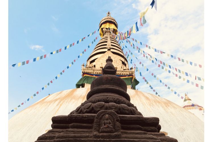 早餐后,返回加德满都。下午抵达后前往斯瓦扬布纳寺参观(45分钟),位于加德满都西部的环城公路边的一座小山上,距离泰米尔区2公里,斯瓦扬布纳特寺(Swayambhunath):又称四眼天神庙,是尼泊尔的佛教寺庙,亦称斯瓦扬布佛塔,位于首都加德满都郊外斯瓦扬布山顶上。建于公元前3世纪,是亚洲古老的佛教圣迹之一。主建筑是一座巨型的舍利塔,塔身为圆锥型,底座为四方形,底座四面绘有眼睛的图案,这是"智慧的眼睛",能够看到世间一切,象征着佛眼法力无边,能看着加德满都的每个角落。佛塔由圆锥形13层相轮组成,表面镶镀着铜片和金箔。塔顶是结构复杂的华盖,华盖之上高竖着镏金宝瓶;塔冠嵌有一颗巨大的宝石。在主塔的四周,还分布着一些小型的舍利塔和转经筒。前往有“洋人街”称号的泰米尔街区自由活动(60分钟),泰米尔街是加德满都著名的商业街道,这里游人如织,可以在这里选购颇具尼泊尔特色的手信。