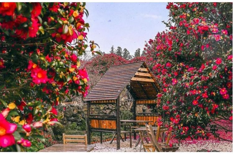 前往【山茶花之丘】济州的冬,让山茶花成了最暖的诗。寒风吹不散枝头的艳,朱红、粉白的花瓣裹着晨雾,在枯木与冷风中傲然舒展。火山岩旁,一丛丛山茶顶着薄霜,嫩蕊凝着细碎的光,不与春芳争艳,只在凛冬里悄悄吐香。(注:赏花情况因季节/天气影响而可能有所不同,敬请见谅。)