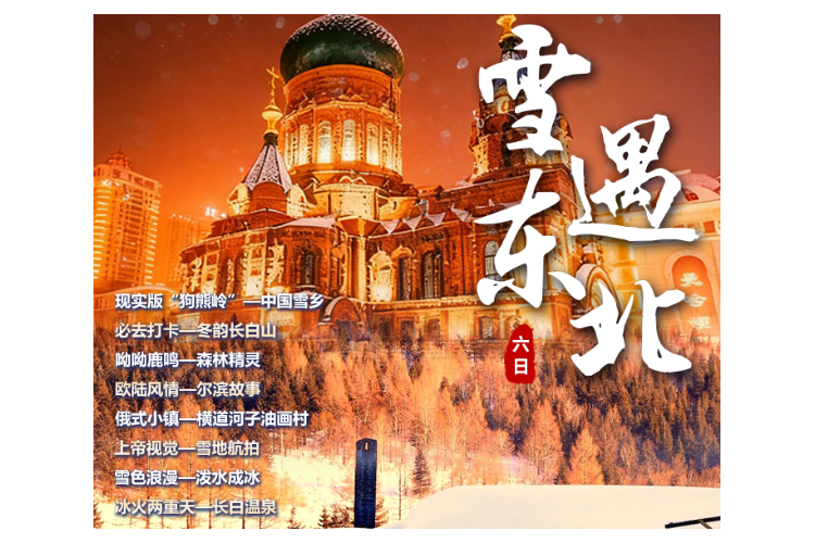 【雪遇东北】东北哈尔滨双飞6天∣现实版“狗熊岭”·中国雪乡∣亚布力∣亚雪公路∣驯鹿部落∣网红草莓熊∣冬韵长白山∣奢享长白温泉∣东北大秧歌∣俄式风情小镇·横道河子∣朝鲜民俗村(南航)