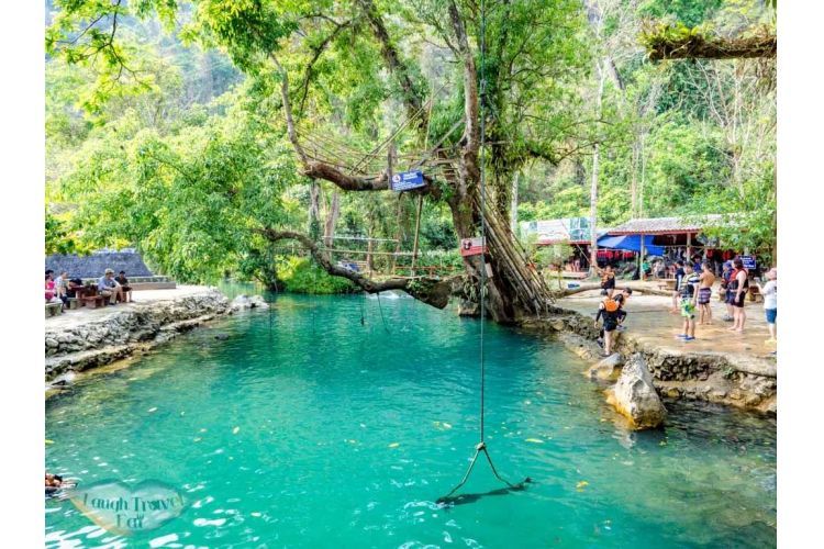 【蓝色泻湖】(约 60 分钟 )从溶洞流出的水令泻湖耀眼,人们争相到此,跳入蓝色的湖水中享受清凉,肆意感受高空跳水的乐趣,也可依靠在木质小桥流水间,欣赏美女跳水、仰望帅哥穿越高空滑索。