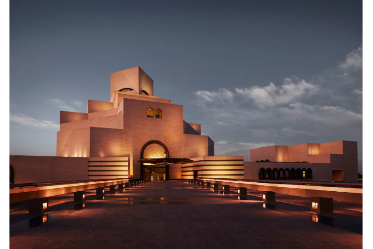参观【伊斯兰艺术博物馆】(入内约90分钟,周三闭馆),位于卡塔尔首都多哈海岸线之外的人工岛上,占地4.5万平方米,是迄今为止全面的以伊斯兰艺术为主题的博物馆。是20世纪成功的华裔建筑师“贝聿铭”收山之作,博物馆外墙用白色石灰石堆叠而成,折射在蔚蓝的海面上,形成一种慑人的宏伟力量。博物馆中庭偌大的银色穹顶之下,150英尺高的玻璃幕墙装饰四壁,人们可以透过它望见碧海金沙;