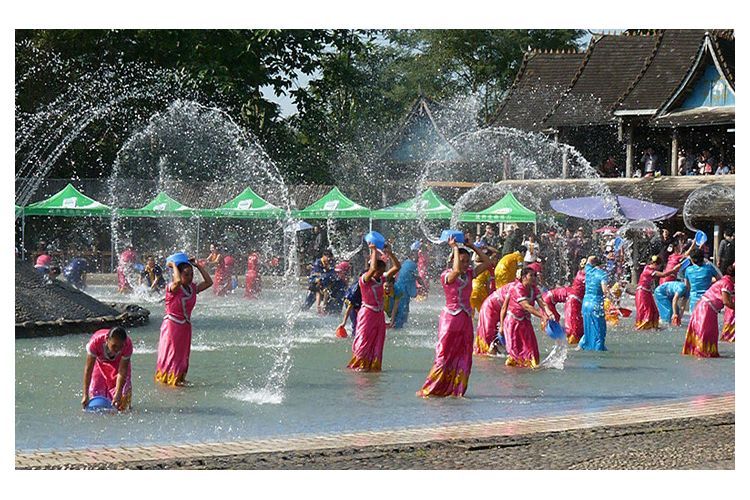 第4天傣族原始村寨-傣族园(泼水广场花车巡游+泼水狂欢+VIP茶歇)赠歌舞剧演出和民族篝火晚会
