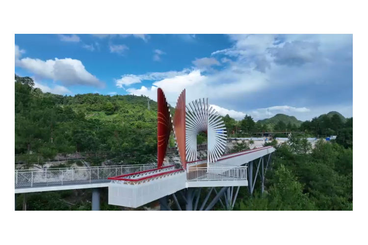 广州出发,沿路接齐各位贵宾后出发,乘车前往参观【万山朝王石漠公园一生一世玻璃廊桥】连南万山朝王(一生一世廊桥)位于连南瑶族自治县 三排镇万山朝王国家石漠公园内,为万山朝王国家石漠公园项 目 的其中一部分 ,项目总投资818.44 万元 ,资金来源于万山朝王 国家石漠公园(森林生态综合示范园)建设专项资金。项目建设 主要内容为新建人行景观桥一座,分为A、B 两段。桥A段由桥南端 云
