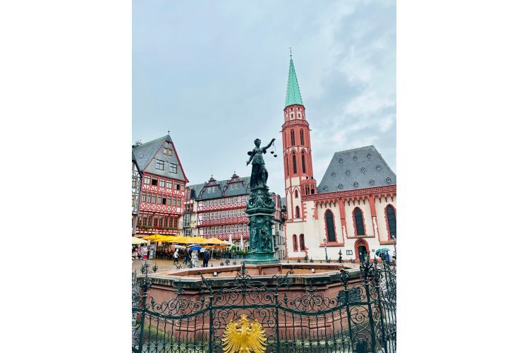 面对罗马广场有三栋山墙形状的建筑物,中间即是被称为「Romer」的旧市政厅,上方摆饰政治家、运动选手的雕像,建筑物的2楼是遴选皇帝后举行庆祝会使用的皇帝厅,内部挂满出身德意志的52位神圣罗马帝国的皇帝肖像画,展示着千年的帝国历史,广场前有正义女神尤斯提西亚的喷泉。