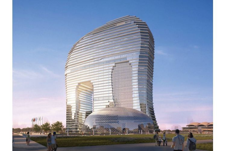 奢住:【大象酒店(湖州南浔万枫酒店)】是当前世界最大象形建筑,蕴含着南浔特有的“四象八牛”传奇之说,寓意着财富和繁荣。塔楼临湖而建,呈现大象湖中吸水形态。“一湖明镜(镜面湖),两相遥望(大象酒店与会展中心)”,设计始于形象,终于象形,大象酒店主体结构由3个核心筒组成,结构异形且复杂多变;整体通过预制化、装配式的钢结构不断塑形,充分展现“象鼻”、“翘臀”等局部特色,大象酒店空中花园网红打卡点,以漫步丛林为设计主题,道路贯穿花园、草坪、儿童活动区、花园餐饮等,以植物为主,全息投影、雕塑、声效、灯光秀等为辅,让来宾在江南水乡南浔亦能感受热带风情。