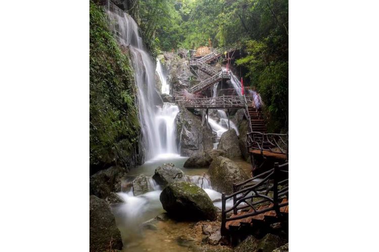 于指定时间地点集合,驱车前往【仙人洞景区】(包含大门票,特别赠送:天空之镜+天使之翼+喊泉,赠送项目,不用不退)位于广东茂名高州市的东北部,座落在“粤西第一峰”之称的大田顶南麓,是国家AAAA级旅游景区、广东省休闲农业和乡村旅游示范点,茂名市十大美丽乡村,是南国避暑圣地和原生态旅游目的地,“绿野、净土、仙人家”是其真实的写照。景区内常年溪水潺潺,飞瀑流泉,叠瀑连环,十分壮观。溪边长满了野生禾雀花藤,曼长百米,径大160㎝,据专家证实属千年古藤。花似禾花雀,串串吊挂在藤曼上,活灵活现,一藤成景,人称“藤上奇花”、“天然翡翠鸟”。仙人洞是有名的“空调村”,由于地广人稀,自然生态保存良好,森林密布,空气清新,7.4弱碱水质优良,冷暖气流交汇,冬暖夏凉,夏季气温20℃—25℃之间,负离子含量非常高,是一个天然的大氧吧、理想的康养避暑度假圣地.。