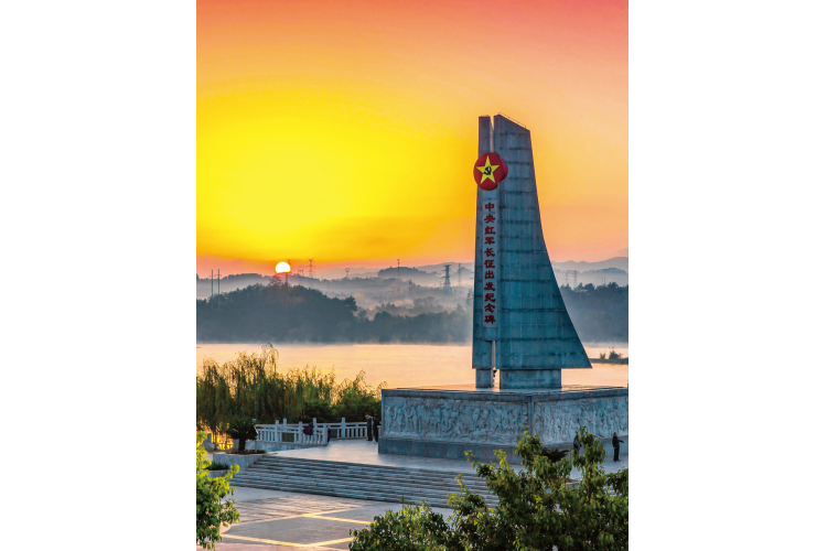 参观【长征第一渡渡口遗址】【中央红军长征出发纪念馆】【纪念碑、纪念园】(参观时间约 1小时)中央红军长征出发地纪念园,由全国重点文物保护单位—中央红军长征出发地旧址于都县城东门渡口、中央红军长征出发纪念碑、游客中心、主题雕塑、新长征广场、中央红军长征出发纪念馆等组成。其中,中央红军长征出发纪念馆建筑面积2200平方米,是目前全国唯一一处展示中央红军长征出发历史的专题性纪念馆,展现了中央红军出发长征的历史及苏区人民支援红军的历史场景。观看情景剧《告别》,在嘹亮的军号声中拉开了帷幕,诉说着88年前中国工农红军从于都集结出发开启二万五千里长征的故事。