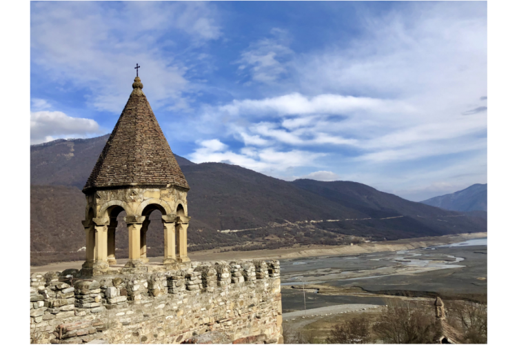 随后参观季瓦里(Jvari)修道院(入内参观约30分钟),修道院坐落在山顶,与姆兹赫塔的主显教堂遥相呼应,Jvari修道院就是传说中的生命之柱故事发生的那个修道院,在山顶上可以一览姆兹赫塔的全景。