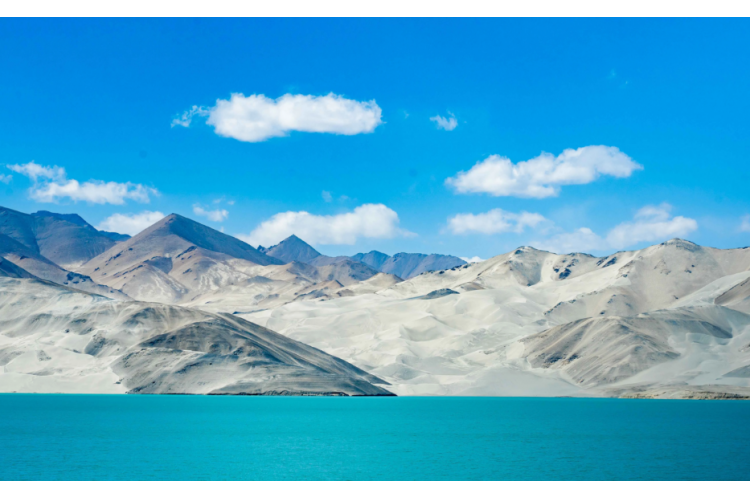 南疆双湖丨昆仑雪山秘境-白沙湖,沙山与蓝天,无缝衔接,与可爱高原牦牛,绘画出独属的南疆风景
