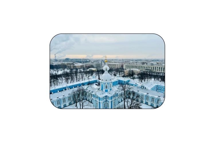 前往【斯莫尔尼宫】(外观)位于圣彼得堡市的东北部,是一座外观典雅的三层建筑。斯莫尔尼宫外观蓝白相间的设计是巴洛克风格和拜占庭风格的融合,典雅别致。