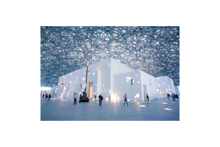 阿布扎比卢浮宫—法国卢浮宫第一个分馆,是一座漂浮在海上的博物馆,展示了来自世界各地的艺术品和文化遗产,是文化与艺术的完美结合.