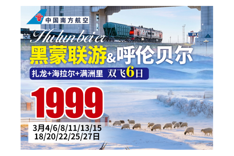 【黑蒙联游&呼伦贝尔】东北内蒙超值双飞6天∣呼伦贝尔大雪原∣中俄蒙满洲里∣中俄国门∣内蒙古唯一朝鲜族乡∣冰河世纪·猛犸象公园∣西山樟子松森林公园∣呼和诺尔湖∣中俄蒙满洲里∣扎龙丹顶鹤放飞表演∣龙沙公园∣扎兰屯吊桥公园(免宿火车)