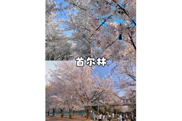 前往【首尔林】(游览时间约40分钟)站在樱花中央,春风一吹直接下起樱花雪,真的美!公园正中心的那几棵樱花树王是拍照的绝佳位置,自带柔光滤镜。