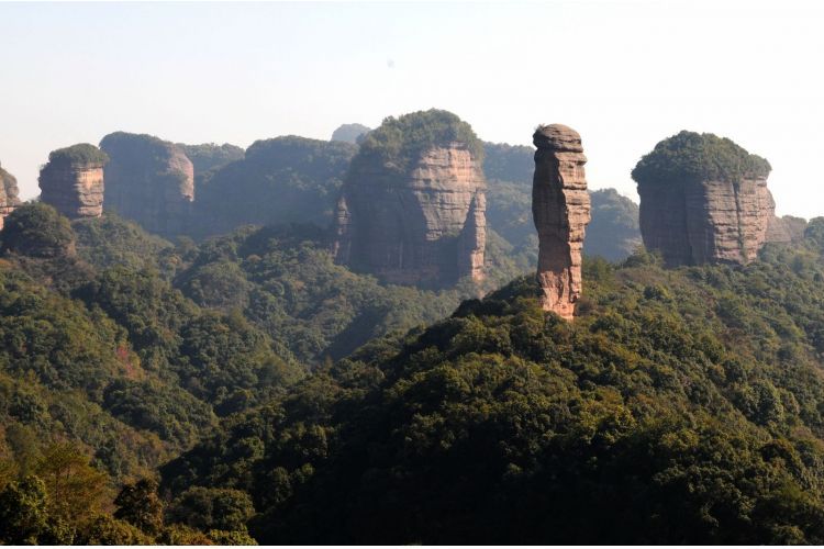 游览【丹霞山长老峰】登上【观日亭】俯视丹霞山全景,途中可看到许许多多奇形怪状的山峰如睡美人、茶壶峰、僧帽峰、蜡烛峰、姐妹峰、别传寺、鸳鸯树等。(缆车因升级改造已停运需步行)