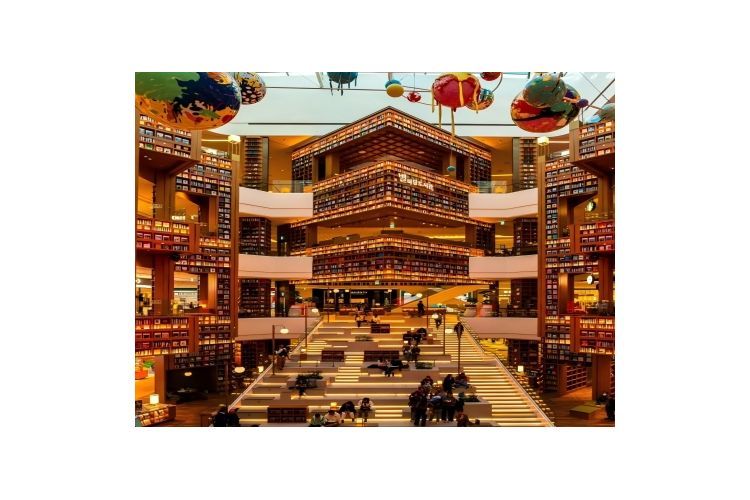 参观【星空图书馆】(游览时间约30min)首尔浪漫天花板,高达13米的巨型书架,从地面一直延伸到玻璃穹顶,几十万册书籍汇成一片浩瀚的星河,像是走进了哈利波特的魔法学院,浪漫又魔幻!