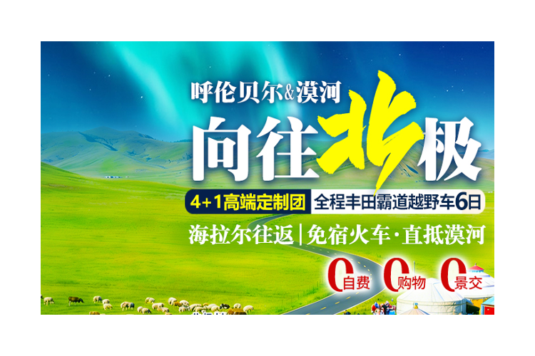 【私享·向往北极】内蒙海拉尔双飞6天∣0自费0景交∣4人成行∣一家一团| 全程丰田霸道越野车∣免宿火车∣极北漠河∣北极村∣漠河舞厅∣最北人家∣漠河舞厅∣呼伦贝尔大草原∣穿越呼伦湖∣额尔古纳湿地∣彩带河∣托马斯小火车∣冷极村∣敖鲁古雅使鹿部落