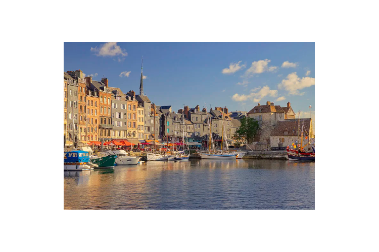 【翁弗勒尔】(游览约 1.5 小时),这里是塞纳河的入海口,位于法国诺曼底大区的渔港城市,港口周围的房子皆是以蓝灰色的石板为主调,周董的《圣诞星》MV 在此取景。