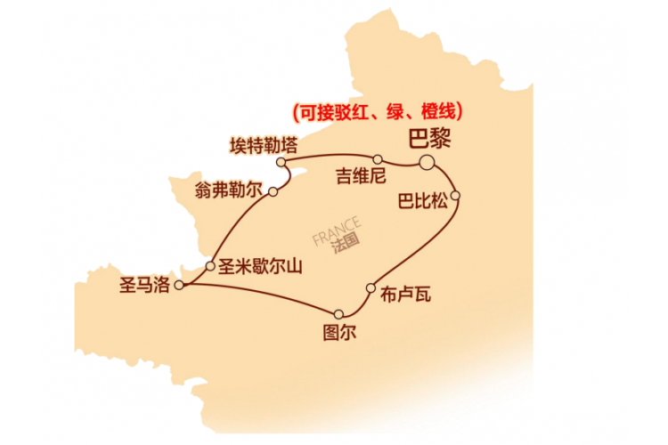 7. 【门票】:行程中所含的首道门票:莫奈花园、圣米歇尔修道院、舍农索城堡、香波堡、昂布瓦斯城堡(其他为免费对外开放或外观景点或需自费景点)