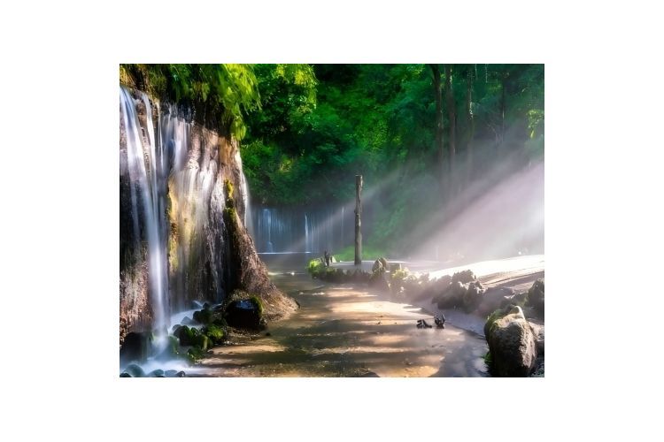 藏在长野县轻井泽森林里的白丝瀑布,没有断崖飞瀑的壮阔,却凭着 3 米落差、70 米宽的弧形水幕圈粉无数。水源是浅间山的地下涌泉,不从上游河道来,而是直接从墨绿的岩壁间渗出,一缕缕垂入清潭,像无数条流动的白丝线吗,春披新绿,夏淌凉意、夜间有「白丝瀑布幻影」灯光秀(入选日本夜景遗产);10 月中旬至 11 月上旬红叶漫山,白丝映丹枫;冬日白雪覆岸,静谧又纯粹。