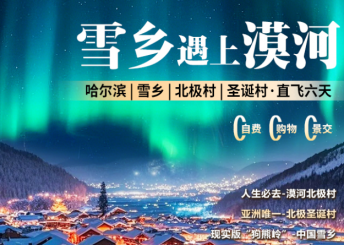 【雪乡遇上漠河】东北哈尔滨双飞6天∣0自费0购物∣不夜城漠河∣北极村∣圣诞村∣漠河舞厅∣“狗熊岭”中国雪乡∣福地松苑∣北极星公园∣冰城哈尔滨∣中华巴洛克∣音乐公园大雪人(南航哈哈往返)